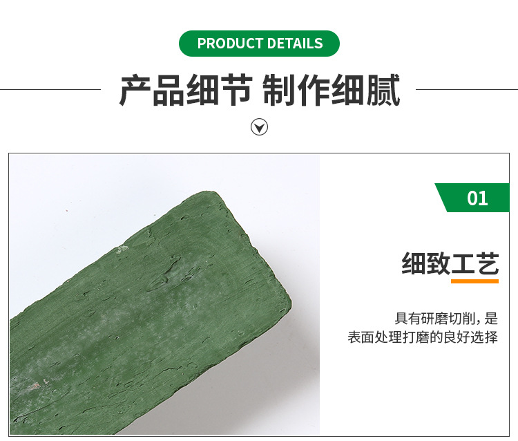 鏡面拋光蠟采用高強全樹脂砂布為原材料,使用高強粘度樹脂膠,產品質量穩定,外觀美觀。適用行業非常廣泛,可用于各類金屬、非金屬產品表面研磨、拋光,采用體貼的人性化梯形長條造型在使用時更加稱心應手,是表面處理打磨的良好選擇